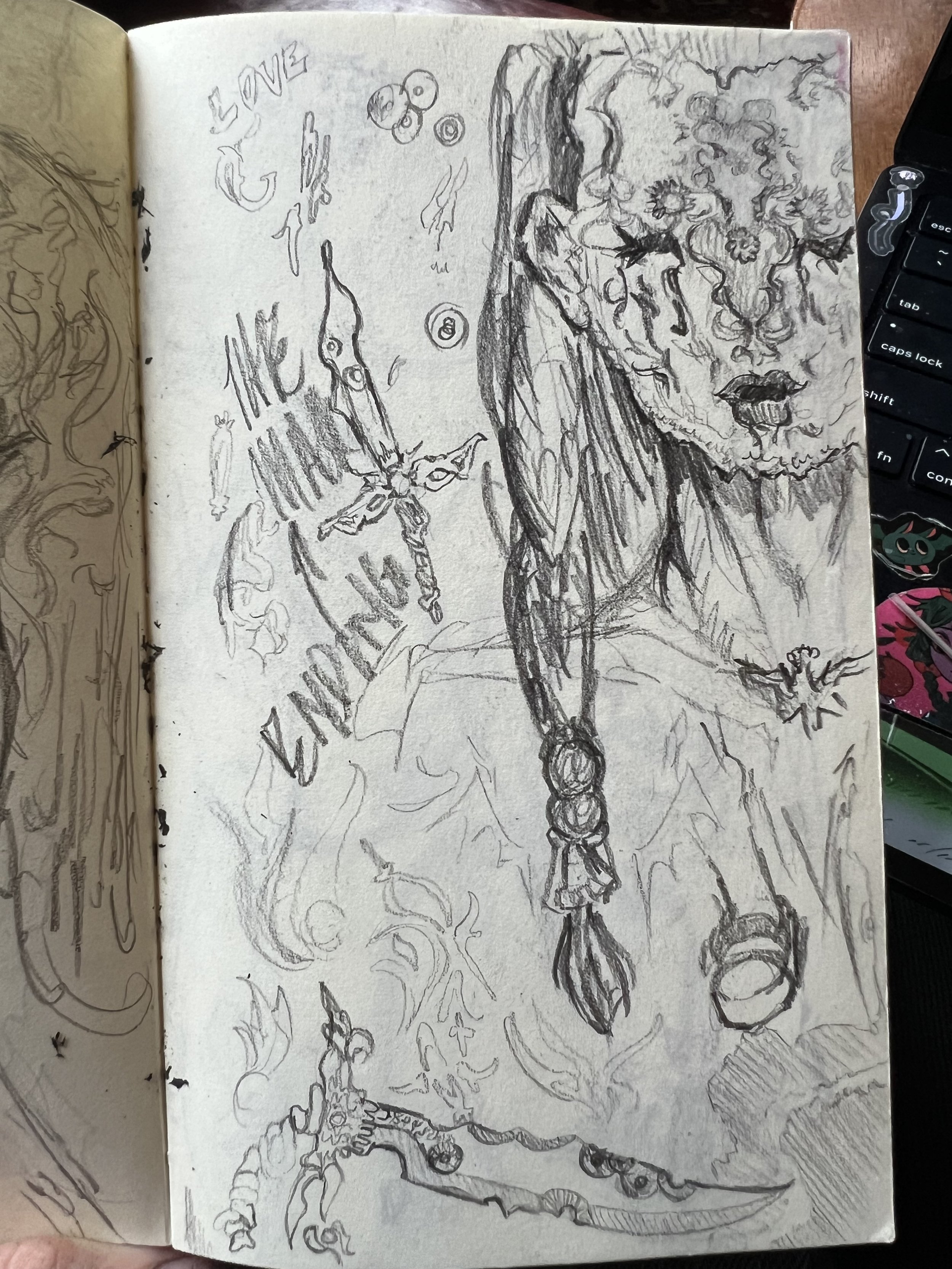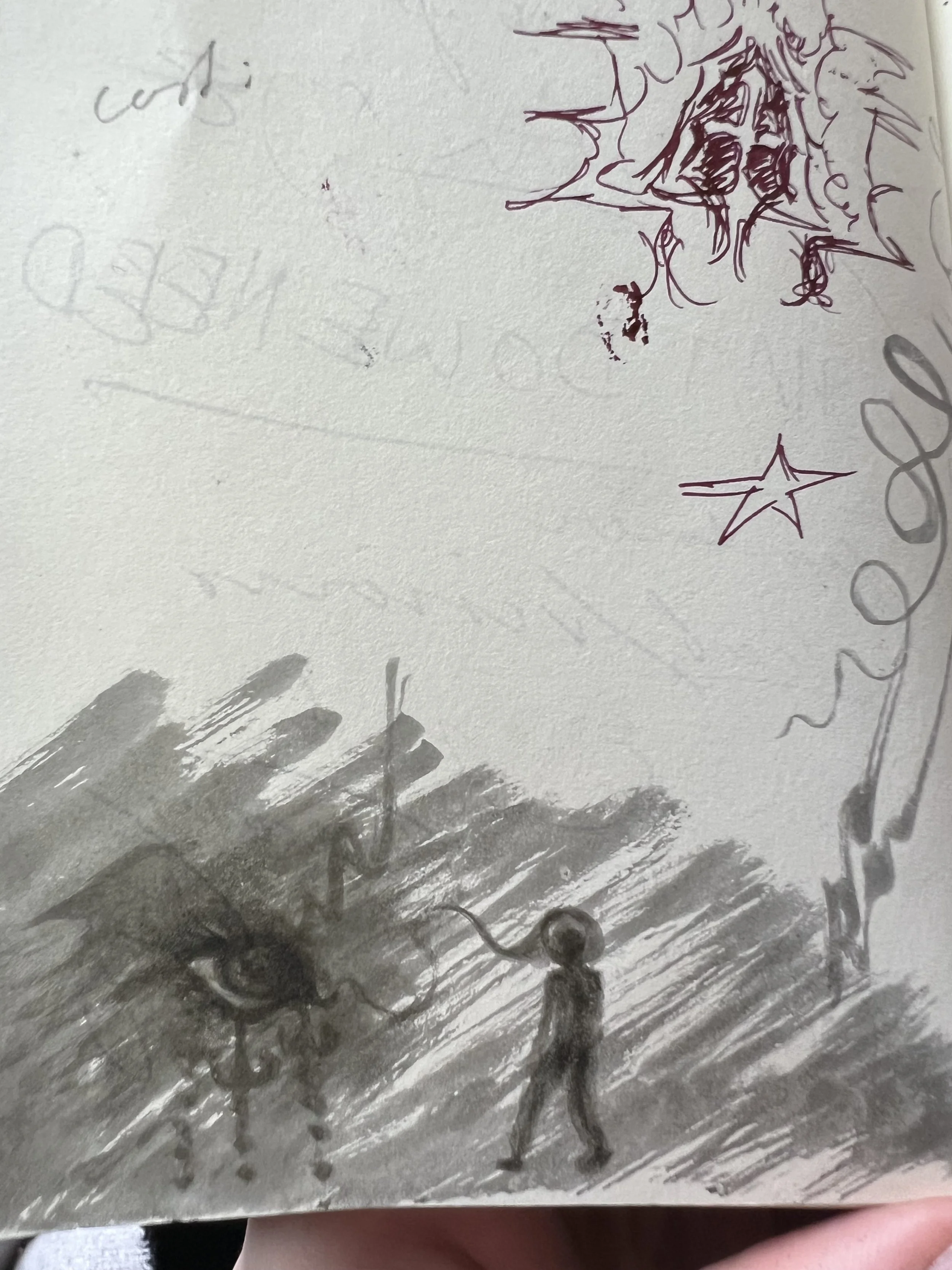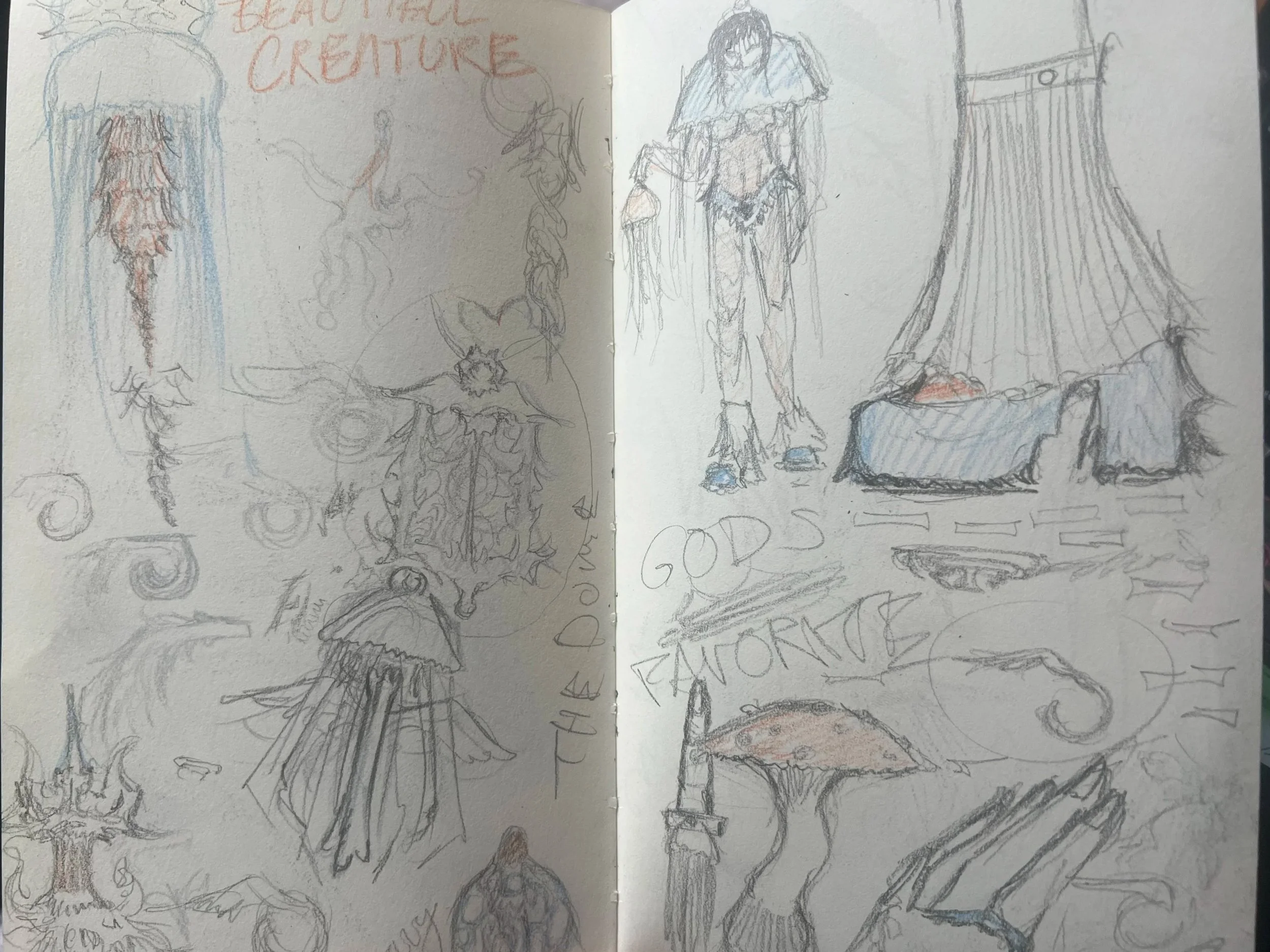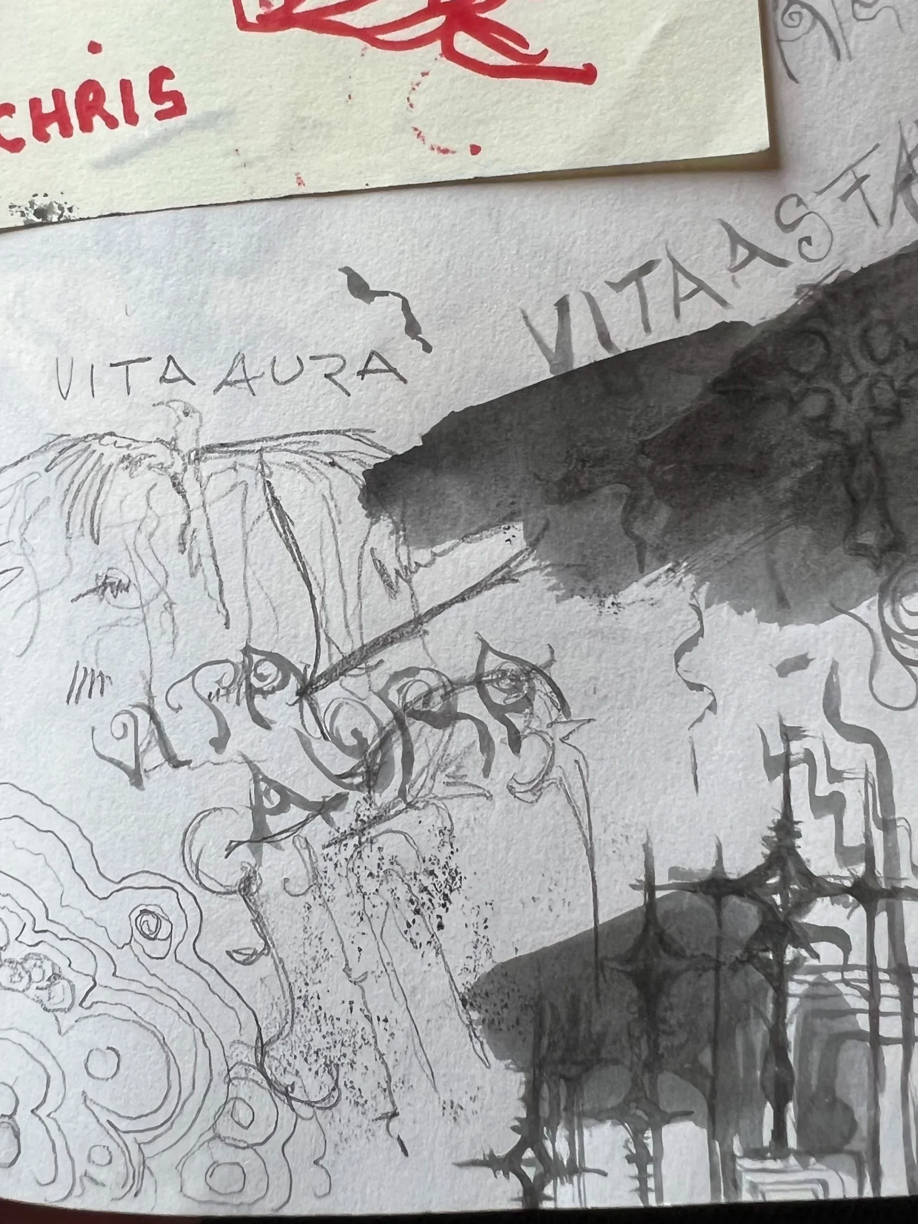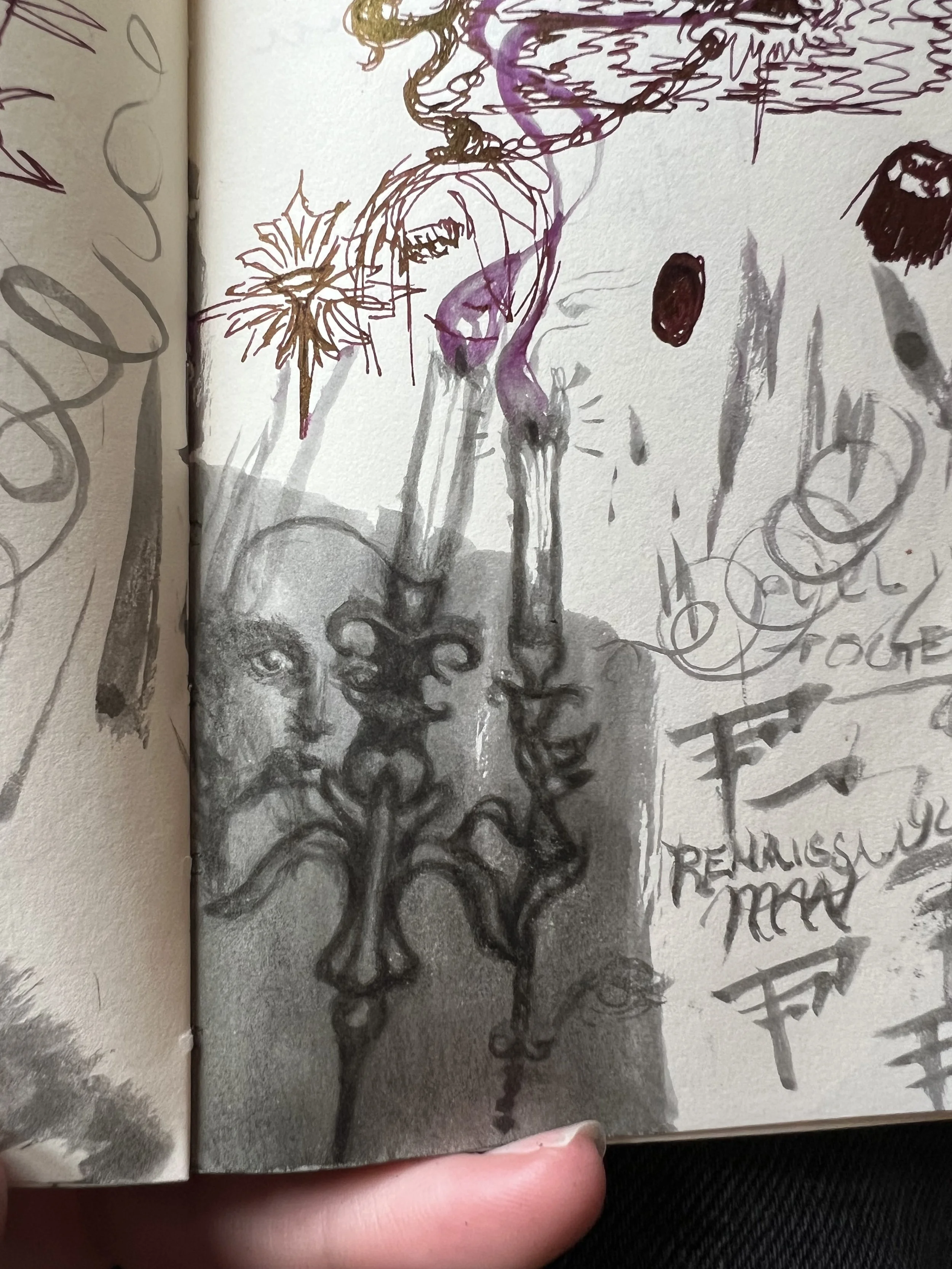 Remember the origins sketches, drafts, half-finished, never started, penicl, ink, paint, all brought together here